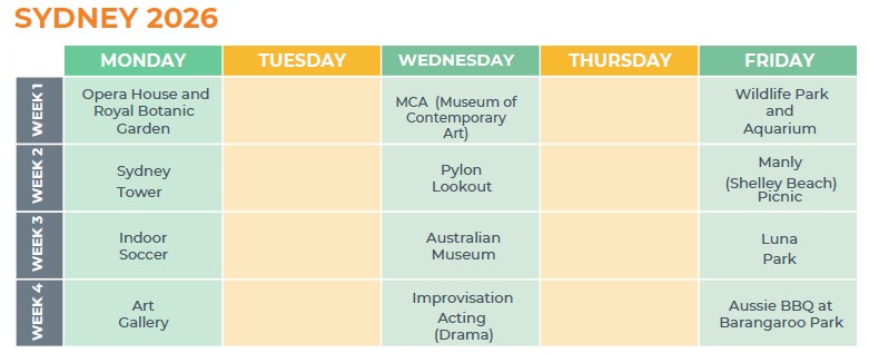每個寒暑假推出的遊學營,除了阿得雷德校區之外,在布里斯本、黃金海岸、墨爾本、雪梨皆有提供遊學營課程(Junior Program)。