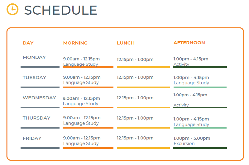 (EU官方遊學營Junior Program課表與活動參考,上課時間最晚至下午5:00放學)